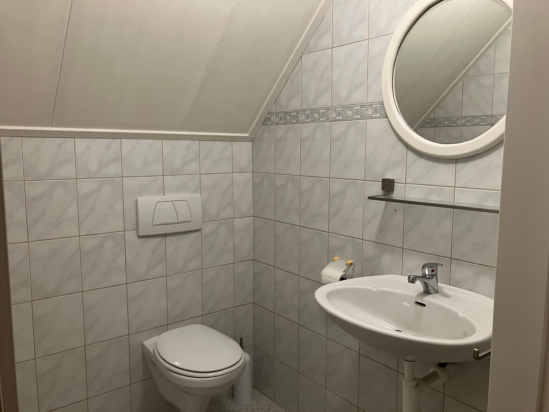 Badkamer is voorzien van douche, badkamermeubel met 2 kranen, toilet. Op de eerste etage is tevens een wasgelegenheid met eigen toilet